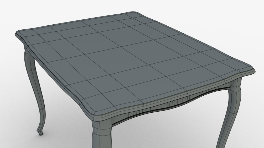 A realistic model of a wooden/fabric Classic Dining Table.